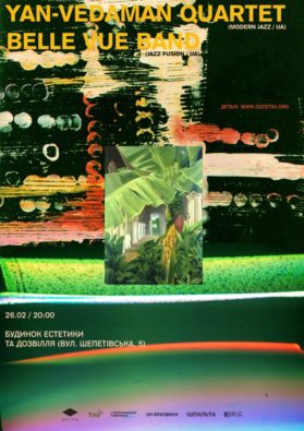 26 лютого о 20:00 відбудеться концерт джазових колективів Yan-Vedaman Quartet (modern jazz, UA) та Belle Vue Band (jazz fusion / UA).