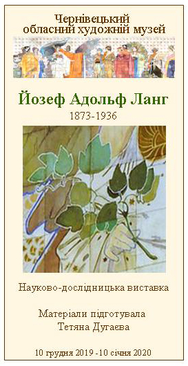 Науково-дослідницька виставка про життя і творчість Йозефа Адольфа Ланга відкриється в Чернівецькому обласному художньому музеї 10 грудня. Чернівчани і гості міста вперше побачать репродукції численних творів монументального мистецтва, графіки, дизайну, живопису, реставрації і дізнаються про факти з біографії митця. Матеріали виставки підготувала Тетяна ДУГАЄВА. Їй слово: […]