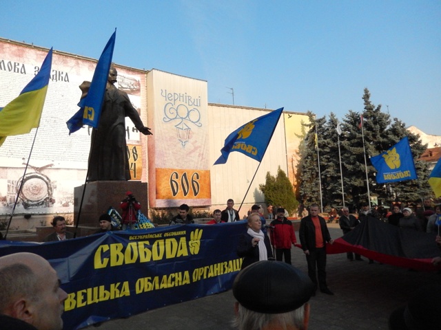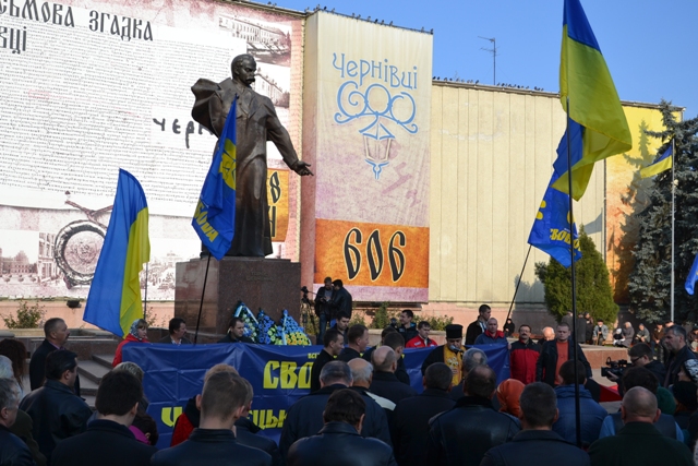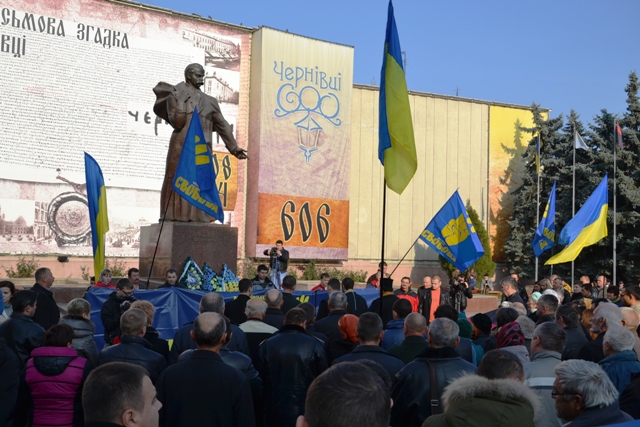 2 листопада на Центральній площі Чернівців біля пам’ятника Тарасу Шевченку Чернівецька обласна організація ВО “Свобода” зініціювала проведення Буковинського Віча “Громадський наступ”.