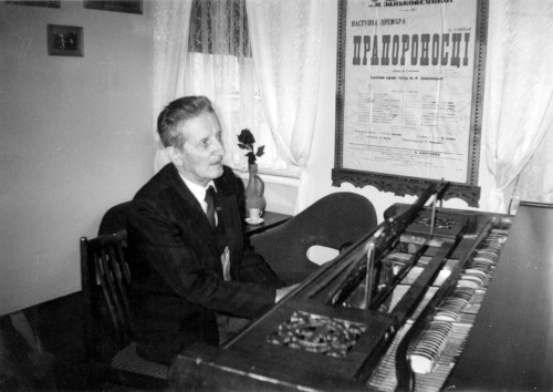 Автор славнозвісної «Черемшини» Василь Михайлюк за роялем Володимира Івасюка. 30 квітня 2003 року, Чернівецький меморіальний музей Володимира Івасюка. Сайт «Сторінки пам’яті Володимира Івасюка»