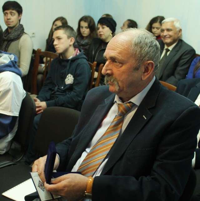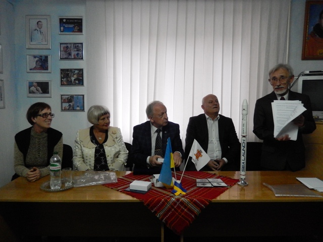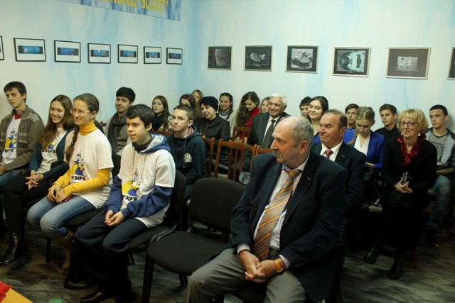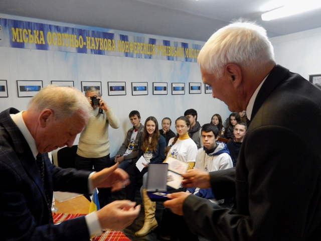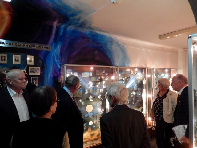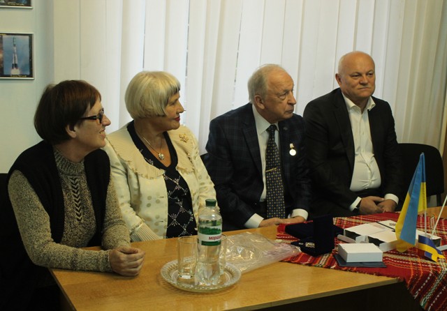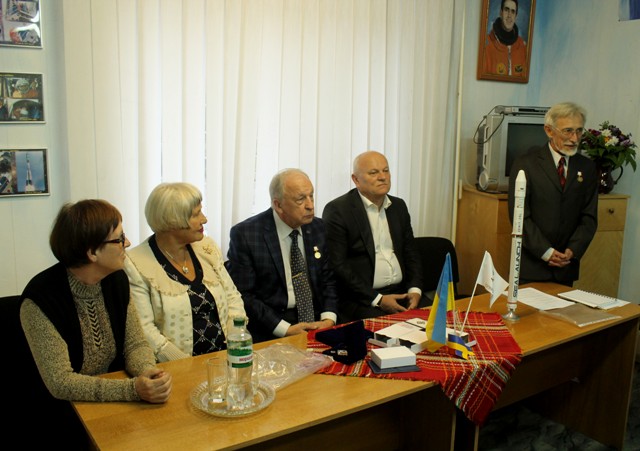 Почесний громадянин Чернівців, радник Голови Державного космічного агентства України Едуард Кузнєцов вручив нагрудний знак «За заслуги» Аерокосмічного товариства України чернівчанам, які допомагали створювати музей.