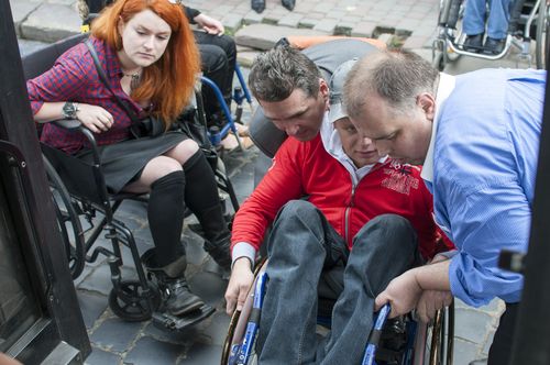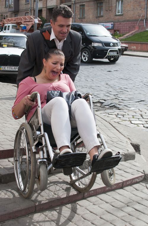 – Ми ніколи не думали, що це так важко, – зізнавалися студенти. Візочки переверталися, коліщатка застрягали в широчезних щілинах між бруківками… На багатьох перехрестях – відсутні пандуси, а там, до вони є, – не завжди без сторонньої допомоги ними можна видертися, іноді їх перекривають припарковані автомобілі. Недоступними для візочників є більшість магазинів, громадських та державних установ, банкомати тощо.