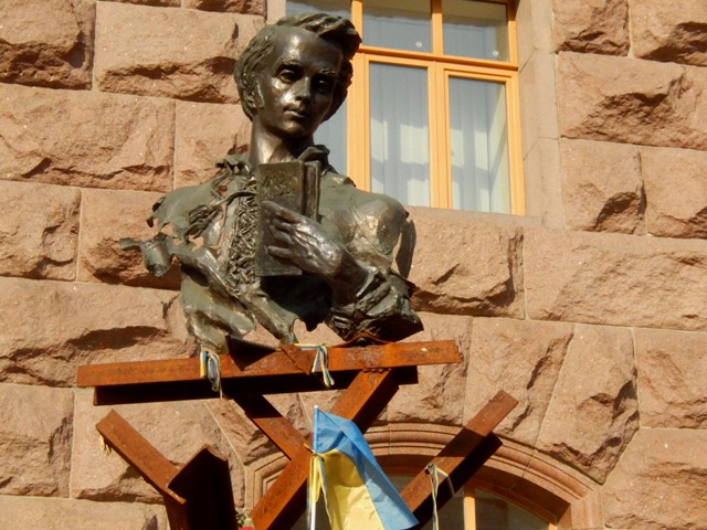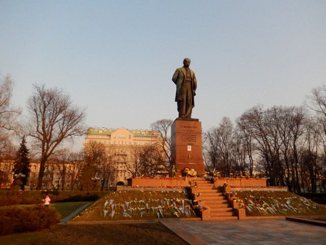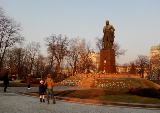 Біля пам’ятника Тараса Шевченку, навпроти Червоного корпусу Київського університету, було затишно, люди приносили квіти, фотографувалися, читали вірші…