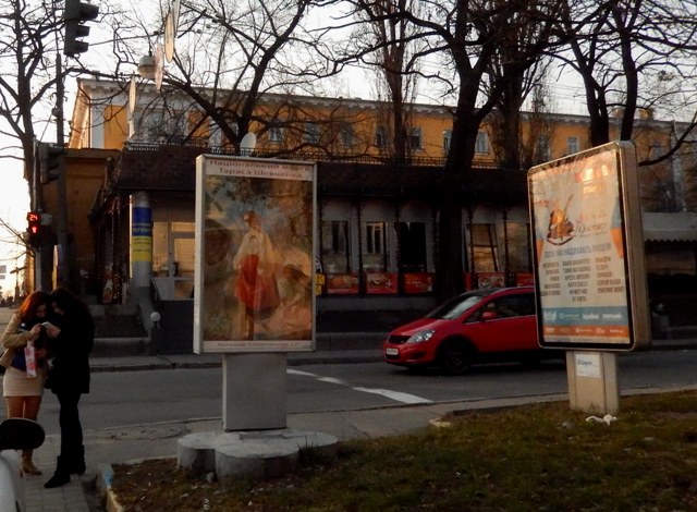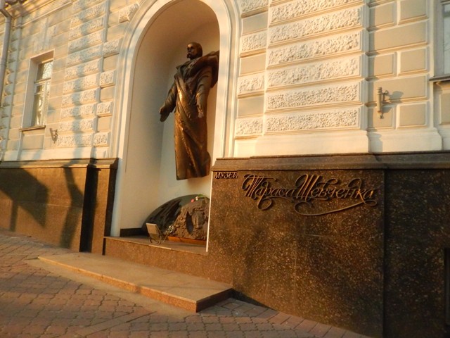 Музей Тараса Шевченка у Києві, той, що на бульварі Тараса Шевченка, здивував відсутністю самої скромної реклами про події музею. Офіційна вивіска, що це музей Тараса Шевченка, знаходиться за двома решітками у боковій частині. Треба зазирнути, нахилитися і прочитати (тільки вдень), що це музей Шевченка. Також зранку там виставляють пересувну тумбу, де плакат сповіщає про «Діла добрих оновляться» – проект, присвячений 200-літньому ювілею Тараса Шевченка, що стартував у травні 2014 року під гаслом «200 років – 200 художників. Ніякої інформації більше не має. Може просто музей не може оговтатись після vip-презентації книги про Майдан Соні Кашкіної. Не знаю.