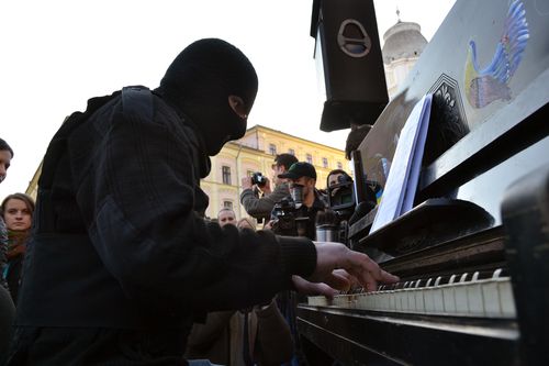 …Якось люди на своїх касках хотіли намалювати піаніста, який грає на Майдані. Але я сказав, що цього не потрібно робити. Я ж іще живий і зі мною все нормально.