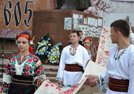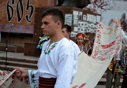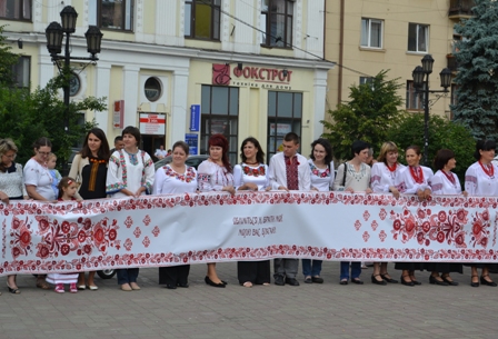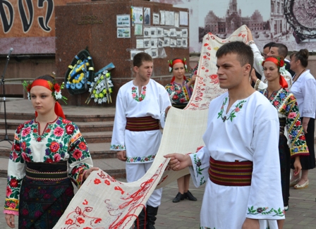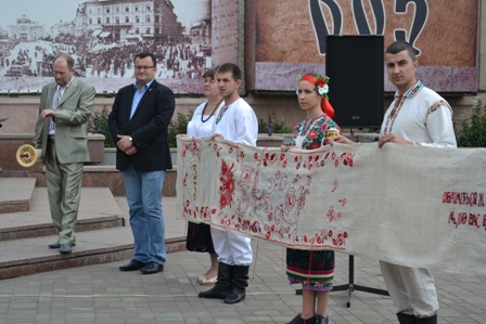 На Центральній площі, біля пам’ятника Т. Шевченку о 10 годині розгорнули символічний рушник єдності, довжиною сім метрів. На цьому рушнику є орнамент двохсотрічної давнини та рядки із віршів Кобзаря. Чернівці стали 15 містом, де розгорнули рушник і взялися його вишивати. Зберігають і перевозять рушник у спеціальній котушці у скрині, прикрашеній Петриківським розписом.