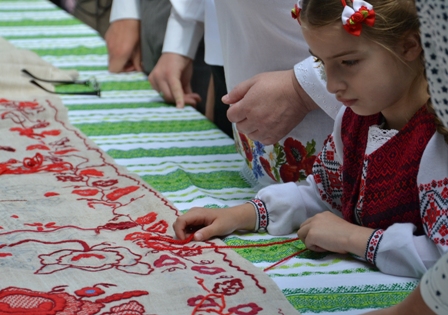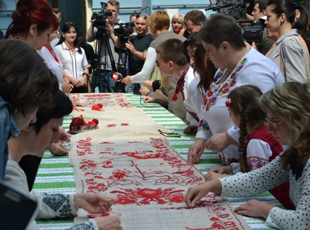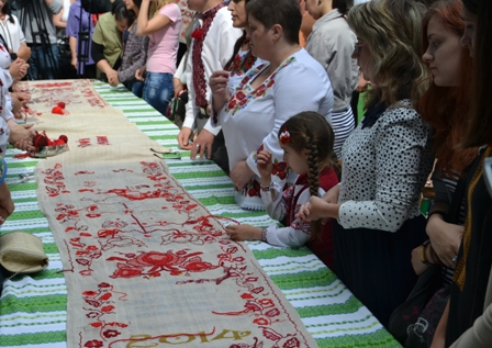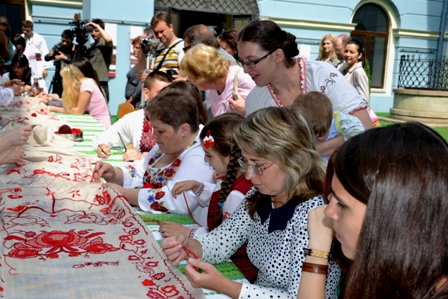 Вишивали рушник у дворику міської Ратуші. Долучилися до вишивки відомі буковинські майстри вишивки. Але кожний, хто бажав, теж міг вишивати рушник.