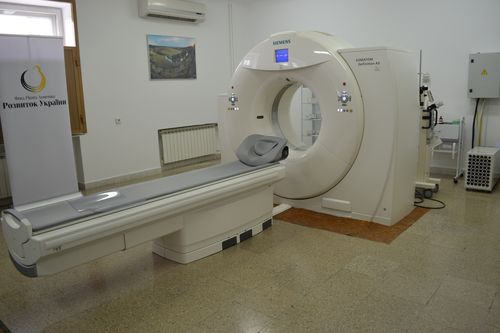 Вчора у Чернівецькому обласному клінічному онкологічному диспансері офіційно презентували діагностичне відділення, оснащене спеціалізованим для онкології комп’ютерним томографом. Нове обладнання вартістю 7,2 млн. грн. лікарям надав благодійний фонд Ріната Ахметова. Такий томограф дозволяє здійснювати діагностику та передпроменеву підготовку пацієнтів, отримувати знімки зрізів м’яких тканин, внутрішніх органів, серця і судин, кісток в різних проекціях та площинах. Новий апарат за 0,75 секунди робить 20 знімків, що значно скорочує час проведення дослідження і знижує променеве навантаження для хворих. А його попередник робив лише 2 знімки за такий проміжок часу.