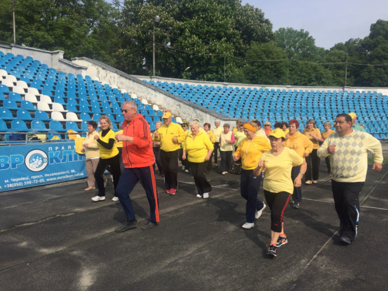 На стадіоні «Буковина» в Чернівцях Василеві Слухенському та Юрію Григоряку вдалося зібрати понад 6 десятків пенсіонерів, які прагнуть поліпшити здоров’я. Але там, де спільні заняття, з’являються й дружні стосунки, спілкування, про яке недарма кажуть, що це найбільша людська розкіш. «Юні» спортсмени настільки здружилися, що після тренування не розходяться одразу ж по домівках, а дружно п’ють чай із печивом, відвідують разом кав’ярні, концерти, виставки. У колективі немає головних чи другорядних, кожний вносить свою лепту. А за добрі справи федерація нагороджує своїх членів грамотами та медалями. Такою грамотою за активність у забезпеченні життєздатності чернівецького підрозділу відзначена нині Тетяна Рижко. Лікар за спеціальністю, вона вже три роки на пенсії. «Отримую величезне задоволення від занять фізкультурою, – каже вона. – Наразі являюся старостою групи, тож завжди маю бути на стадіоні у визначений час. А про хвороби вже й забула, можу побігти будь-куди – і мені не потрібен транспорт. Схудла завдяки заняттям на 10 кілограмів. Настрій завжди позитивний. Усім раджу не нехтувати спортом, точніше фізичною культурою, бо із віком рух стає ще важливішим, стає, так би мовити, умовою не просто виживання, а якісного життя». Чернівчанка у свої 71 відвідує, окрім ходьби, ще й басейн.