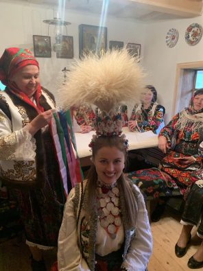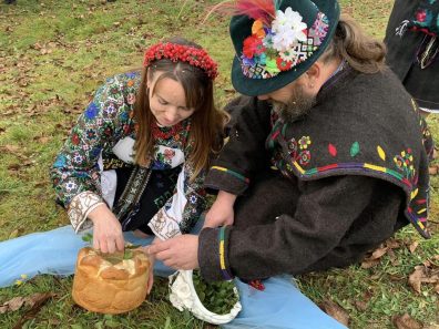 Надзвичайно цікавим та красивим є обряд з Кіцманщини пошиття оберегового барвінкового вінка для молодої та молодого. Мудрий та витриманий у кращих українських традиціях, обряд відбувся на відкритому просторі осінніх краєвидів музею, де молоді збирали барвінок для вінків, а потім плели його у хаті «Передгір’я» – етнографічній родзинці музею просто неба!