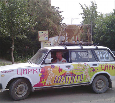 Розмальований легковик через рупор, на повну гучність рекламував приїзд цирку. На даху авта була прикріплена клітка із... живим левом!!! Машина на швидкості їздила вулицями міста, а тварина кидалася з кутка в куток і ревла на повні груди