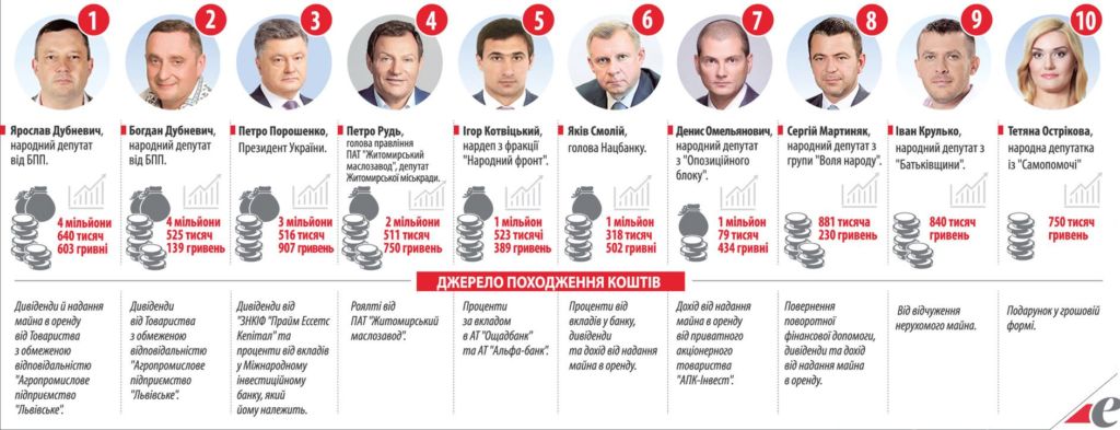 Рейтинг заробітків у вересні-2018 (expres.ua) Як з’ясувалося, найбільше прибутків у вересні отримав Ярослав Дубневич, народний депутат від БПП. Його статки поповнилися на 4 мільйони 640 тисяч 603 гривні. На другому місці опинився Богдан Дубневич, який став багатшим на 4 мільйони 525 тисяч 139 гривень. Обидва брати отримали дивіденди від Товариства […]