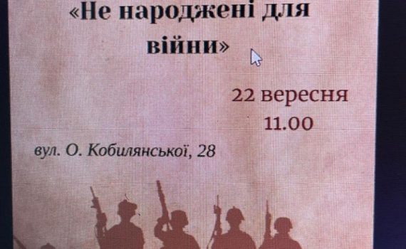Презентація фотовиставки з такою назвою відбудеться в стінах Чернівецького обласного краєзнавчого музею в понеділок 22 вересня об 11.00. Фотовиставка «Ми не народжені для війни» присвячується воїнам 82-ї ОДШБр – тим, хто зник безвісти, перебуває в полоні чи загинув, захищаючи Україну. Організатори виставки – об’єднання родин безвісти зниклих, полонених і полеглих […]