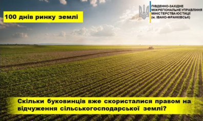 Ринок землі в Україні запрацював 1 липня нинішнього року. За цей час нотаріусами Чернівецької області посвідчено 487 правочинів щодо відчуження сільськогосподарської землі.