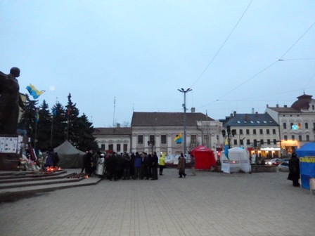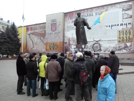 Чернівчани, стурбовані ситуацією в Криму, на сході України, збиралися сьогодні на протязі дня на Майдані.