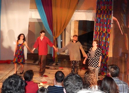 У перерві (за 20 хвилин працівники сцени встигли віддзеркалити сцену і глядацький зал) ми жваво спілкувалися з акторами театру Творчого об’єднання «Альтер» з Дрогобича, з якими випадково зустрілися у фойє. Вони теж приїхали у Львів насолодитися виставою театру Леся Курбаса.