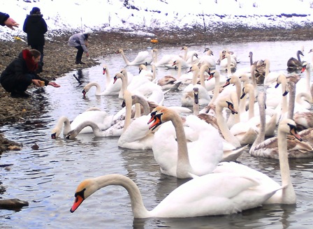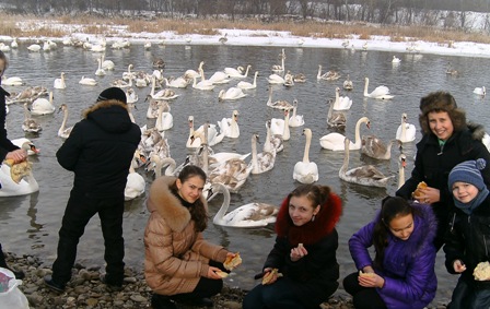 Щорічно на водоймища в селі Чортория прилітають зимувати лебеді-шипуни. І щорічно чернівецькі школярі, як і школярі Чернівецької області, долучаються до акції допомоги птахам взимку.