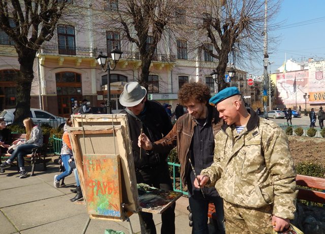 У центрі ми обійшли всі спеціалізовані магазини і так і не знайшли значок у вигляді синьожовтого трикутника на блакитний берет десантника. А нова форму, яку Віктор купив (бо після Авдіївки стара форма мала вигляд одягу персонажу, яким лякають людей), вже почала на місці карманів розшиватися по швах. Бо якість – “швах”… Я вже не говорю про склад тканини.