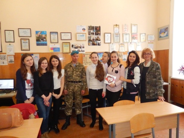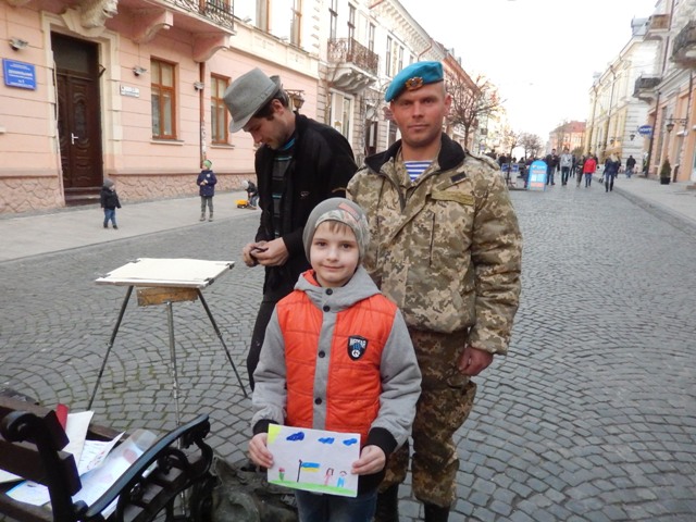 Зустрічі з художниками. І з майбутніми також. Спочатку юний Сашко (майбутній художник) подарував свій малюнок Віктору. І передав для побратимів Віктора листи і малюнки своїх однокласників.