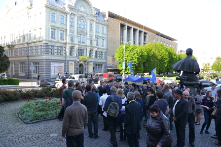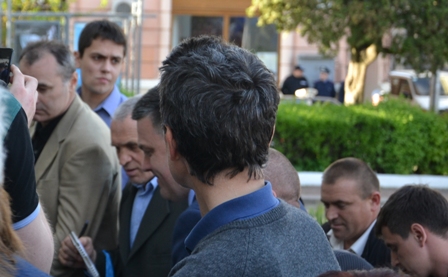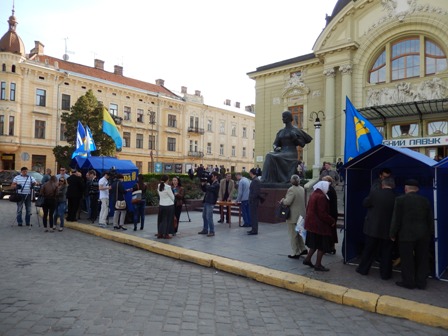 У Чернівцях біля Чернівецького академічного обласного українського музично-драматичного театру імені Ольги Кобилянської відбулася зустріч Олега Тягнибока з пресою, а потім у театрі відбулася зустріч з чернівчанами.