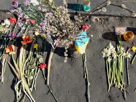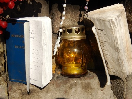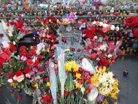 Майже біля кожного намету лежать квіти, молитовники та горять лампадки.