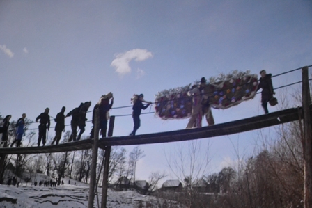 Напередодні свята, а саме за день на ньому шиють костюм «Ведмедя», костюм можуть шити цілу добу. Він розповідає про певні особливості костюма – це його крила розмахом до 5 метрів…Новела 3: Ведмідь з кута Путна