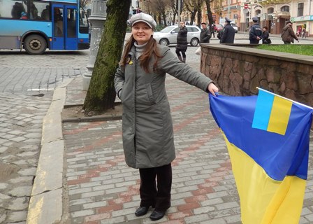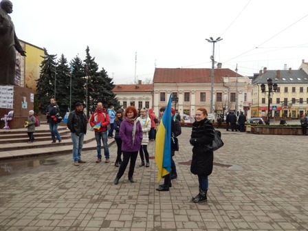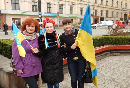 Учасники створили з людського ланцюга велике серце біля памятника Т.Г. Шевченку. Я сама стояла в цьому ланцюгу, тому фото всієї фігури не зробила. І вже після того, як усі заспівали гімн України й закінчилася акція, я зробила фото деяких учасників.