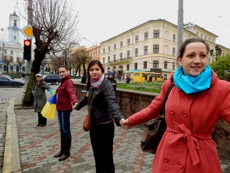 12 квітня чернівчани підтримали ініціативу пересічних громадян, які об’єдналися ідеєю створення живого ланцюга – ланцюга єднання – єднання заради миру.