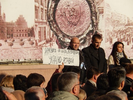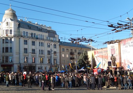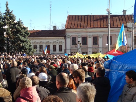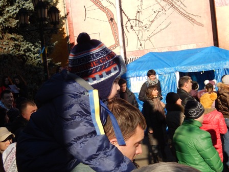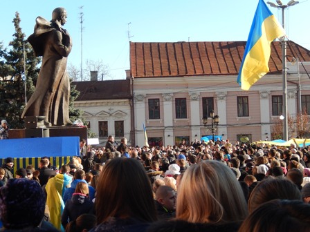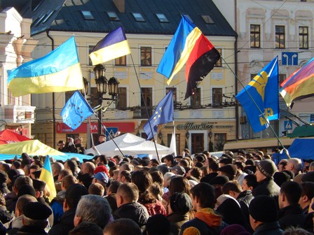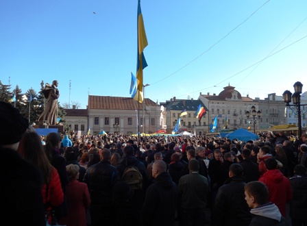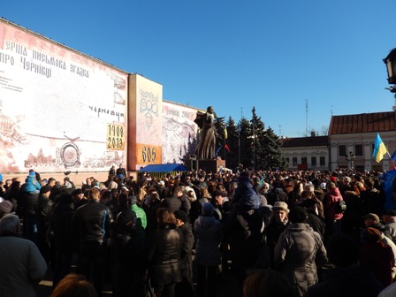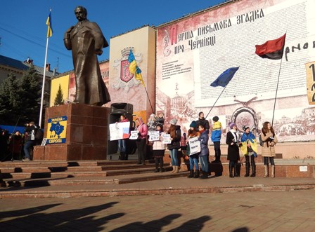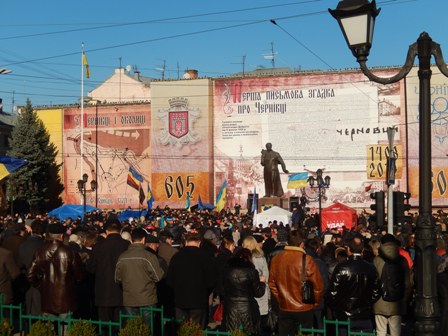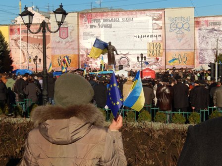 1 грудня, у Чернівцях на Центральній площі (ще називають зараз її Євромайданом) триває народне віче на підтримку євроінтеграції України. Мітинг об’єднав людей, які протестують проти кривавого розгону мирного Євромайдану в Києві.