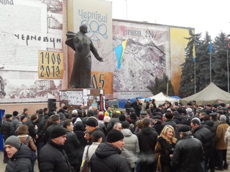 27.02. 2014 на Майдані у Чернівцях відбулося Народне віче. Говорили про необхідність відновити вертикаль державного управління, про охорону громадського порядку та народної власності, про необхідність закону про люстрацію (людей непокоїть певний ажіотаж навколо майбутніх посад), викривати пристосуванців у кожній народній раді, у кожній держустанові, у кожній партії. Потрібно, щоб був чіткий контроль над усіма органами влади. Завдань дуже багато, але важливо пам’ятати – не вдаватись до помсти, самосуду і зведення власних рахунків, не влаштовувати «полювання на відьом».