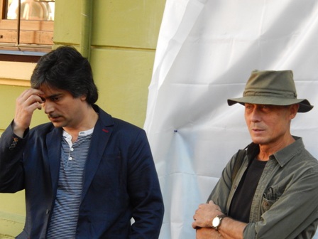 Про те, що Олег Любківський створює фрески на фасаді одного з чернівецьких будинків, взнала випадково від Антоніо Армано, письменника та репортера з Мілану. Пану Антоніо треба було від Турецької площі попасти на вулицю Університетську. Це вже після нашої невеликої екскурсійної прогулянки нижньою частиною міста. Порадила не викликати таксі і вулицею Богдана Хмельницького ми попрямували до цілі. На колишній вулиці Святої Трійці, вже біля ательє художника Олега Любківського, пан Антоніо впізнав, що був тут напередодні. А поспішав він якраз на зустріч з художником. Який на фасаді будинку №17 по вулиці Університетській завершував створення вивіски-фрески. Можна тільки уявити, яким було має бажання і спокуса підійти разом з Антоніо до художника, до будівлі і побачити на власні очі, як все відбувається. З іншого боку залишила собі два дні фантазувати, самій конструювати простір картини, непередбачуваної чи навпаки…