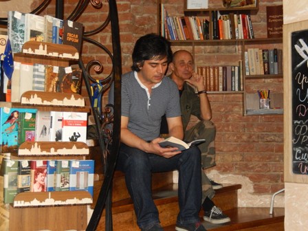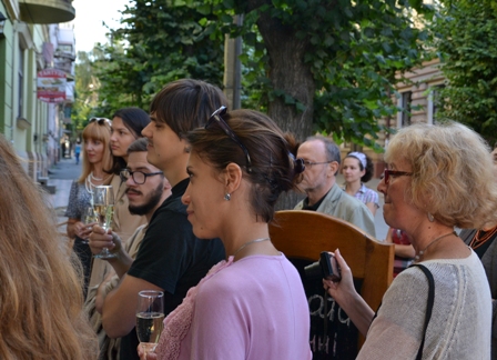 Есеїст і перекладач Олександр Бойченко провів всіх повз стіни із білими тканинами, що прикривали картини, перевтілившись з літературного критика на художнього. Та Олександр Бойченко урізноманітнив відкриття і своїм есеєм. А на сходах кафе Олег Любківський теж читав своє оповідання, історію, що складалася з маленьких уламків спогадів… Привід для міркувань….