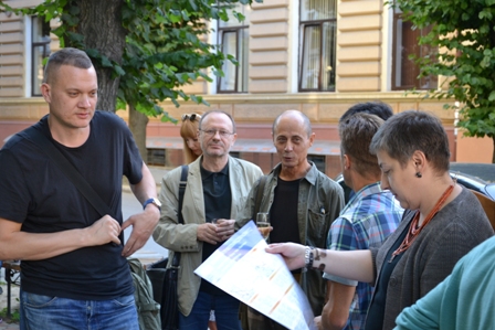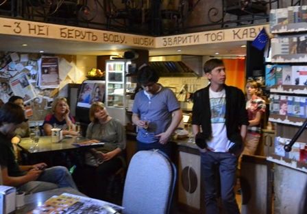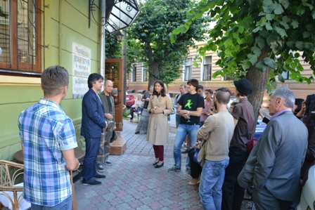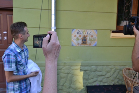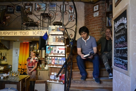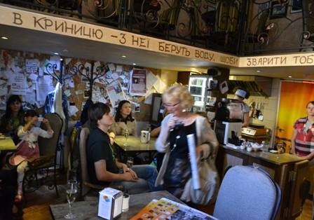 Напевно, це і певний рекламний проект. Директор видавництва «Книги – ХХІ» Василь Дроняк, власник кав’ярні, тепер вже і власник фресок, зібрав разом із художником багато охочих побачити церемонію відкриття картин.