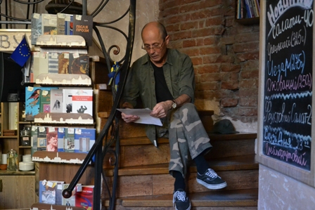 Важко абстрагуватися від подій в країні, від сумних передчуттів і постійної напруги очікування… Киянин Ігор Гурчик підписав під цим фото Олега Івановича на ФБ: «Невеселий…». Споріднено… Ігор Гурчик щойно з АТО («Айдар»), поранення… Свого часу Олег Любківський – автор обкладинки до збірки «Странник» Ігоря Гурчика…