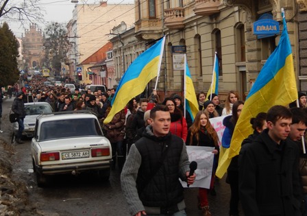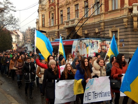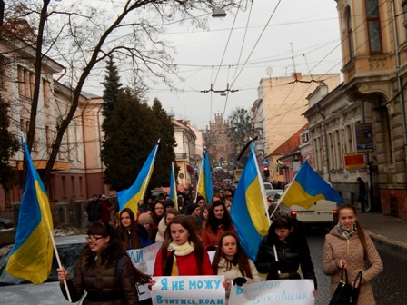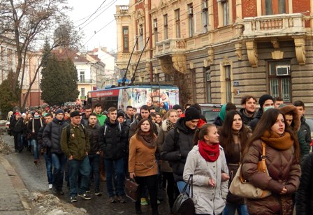 “Ми не можемо вчитися, коли вбивають людей”, – з такими гаслами від центральних корпусів ЧНУ студенти розпочали протестну ходу вулицями Чернівців.