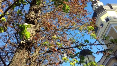 Природні аномалії цього літа і осені “докотилися” й до Чернівців. На фото, надісланому нашими читачами, видно молоді зелені пагони та білі каштанові “свічки” посеред всохлого листя на деревах, що ростуть на вул. Руській просто навпроти греко-католицької церкви. Тож тих, хто скучив за весною, розквітлі каштани чекають на розі вул. Садовського та Руської.