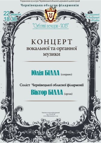 Солісти – Віктор Білла (орган) та Юлія Білла (сопрано).