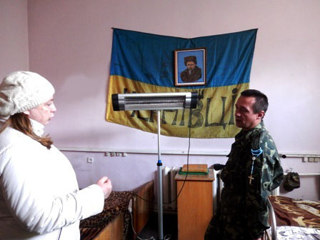 Ми оглянули приміщення, звернули увагу на бойовий прапор, який привезли з Києва, з Майдану.