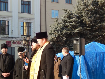 Традиційно мітинг розпочався із молебню за Україну, який провели священнослужителі УПЦ КП та УГКЦ.