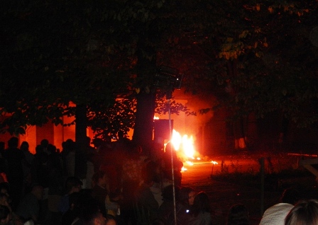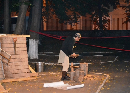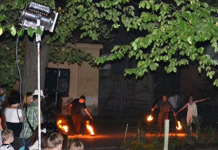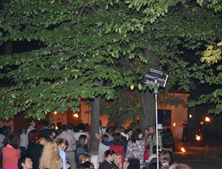 Цього разу умовною театральною сценою була доволі велика площа подвір’я Міського палацу дітей та юнацтва. Декорацією до вистави природно стали і темне небо, і місяць, зорі, дерева, їх довгі тіні, осіннє листя, що пружно і, рухаючись за хвилястою траєкторією, встеляло поверхню землі.