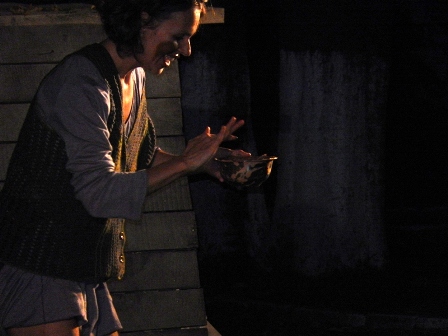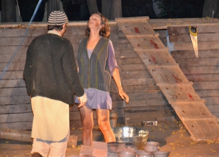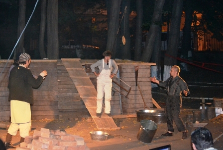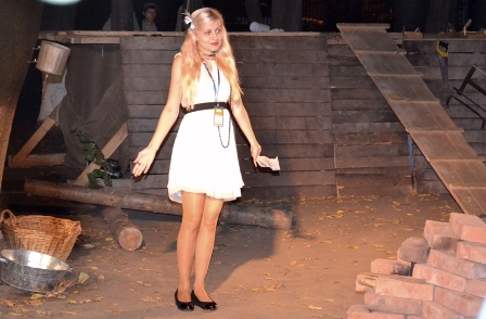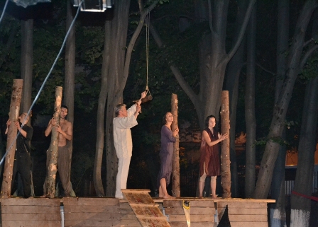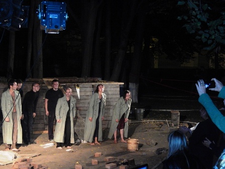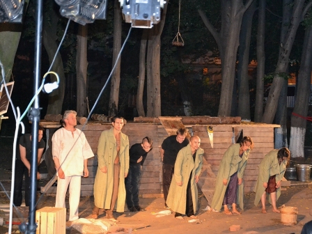 – Працювали над виставою у червні і потім від 15 серпня і до прем’єри. Були дощі і під час репетицій, але ми продовжували роботу. Дерев над головою багато, отже дощик не так відчувався. Звичайно, хвилювалися за погоду у день прем’єри. Але за декілька днів до того, зранку, пройшов дощ, коли я прийшла на роботу, то побачила, що мокро було всюди, окрім того місця, де повинна відбутися вистава. Напевне, саме в цю мить впевнилась, що весь Всесвіт за те, щоб у нас все вийшло.))))