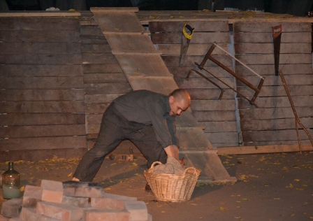 – Якщо Ви будете робити цю постановку на академічній сцені, чи буде щось змінюватися у сценарії? – Я не зовсім розумію, що таке академічна сцена. Якщо мається на увазі традиційний сценічний майданчик, то зміни звичайно ж будуть. Ми завжди відштовхуємося від середовища в якому граємо. Стосовно “сценарію” – я б швидше назвав його партитурою, сюжетною основою, історією. Сценарій – це швидше КІНО, або “звітній концерт самодіяльних колективів області”. Отже, щодо сюжету, то в ньому змін не буде й не планується, а от щодо засобів виразності, то вони будуть відмінними від побачених, адже різний сценічний простір по-різному вимагає вмикати свою психофізику.