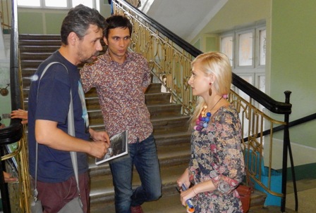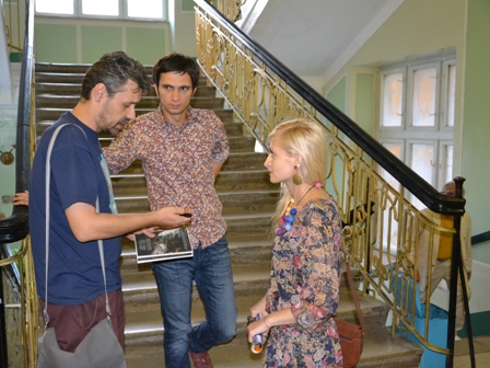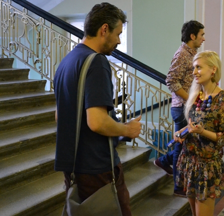 Тепер дозволю і собі сказати, як глядач. Який точно не дуже обізнаний в тонкощах понять «сценічний майданчик», «сценарій», «академічна сцена», «четвертий план»… Глядач знає, бачить, спостерігає акторів по цей бік сцени, а не у їх закулісному просторі, це точно. Правда у випадку НТЛ це не завжди так, адже опускання занавісу теж було умовним. Мене бентежить ще той факт, що розповідь про виставу «Довгі очі» продовжується у блозі третій день. Спочатку (у перший день) були фото і особисті враження від вистави. А коли 6 вересня (другий день Meridian Czernowitz) у Центральному палаці культури зустрілася випадково з Христею Венгринюк, Олегом Мельничуком та Іваном Даніліним, які на сходах другого поверху відсторонено і захоплено про щось говорили, підійшла висловити їм свою вдячність. За виставу і можливість спостерігати і проектувати на власний розсуд ілюзорний світ, який нам представили актори, режисер та автор текстів «Довгі очі». У мене виникли до акторів, режисера деякі запитання. Я отримала їх відповіді. І ось вже сьогодні додала ці тексти…