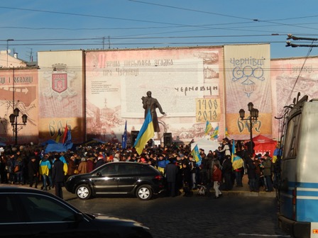 2 листопада на Центральній площі Чернівців біля пам’ятника Тарасу Шевченку Чернівецька обласна організація ВО “Свобода” зініціювала проведення Буковинського Віча “Громадський наступ”.