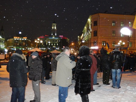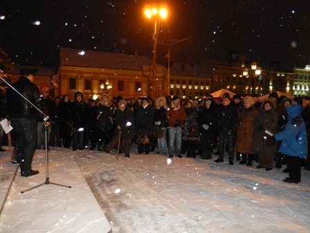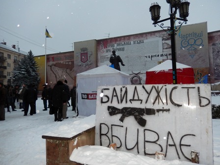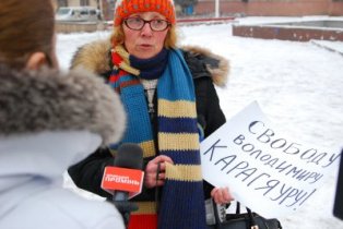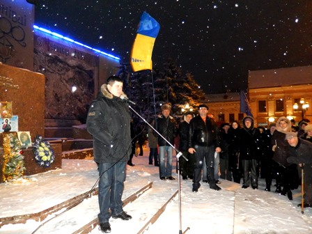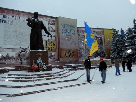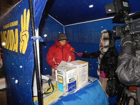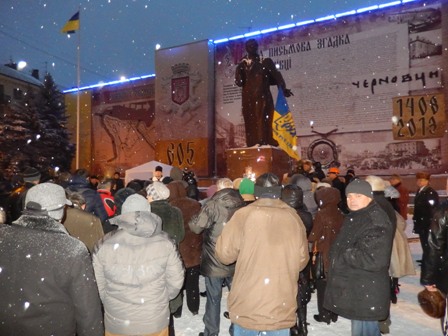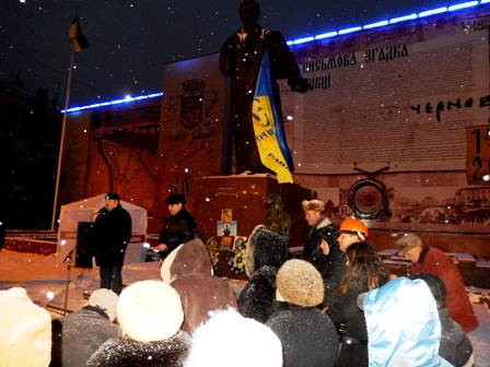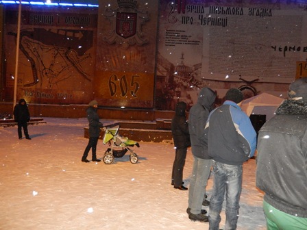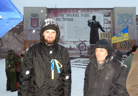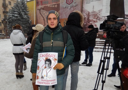На Євромайдані у Чернівцях журналісти, представники організації “Студентська республіка”, деякі чернівчани вийшли на підтримку оператора Спільнобачення чернівчанина Володимира Карагяура, якому інкримінують організацію масових протестів на вулиці Грушевського. Оператора «Спільнобачення» чернівчанина Володимира Карагяура та двох волонтерів було затримано вночі з 19 на 20 січня на автозаправці, коли він купував пальне для генератора телеканалу, який працює просто на вулиці і потребує постійного живлення.