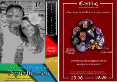 Нинішньої п’ятниці, тобто наступного після виходу цього числа «Версій» дня, свою сцену «Буковинському Феніксу» надасть Центральний Палац культури Чернівців, де о 19:00 розпочнеться комедія «Кастинг», побудована на найкращих традиціях італійської комедії дель-арте із традиційними персонажами Арлекіно, П’єро, Коломбіною. Постановниця – режисерка з Румунії Ізольда Кобєц.