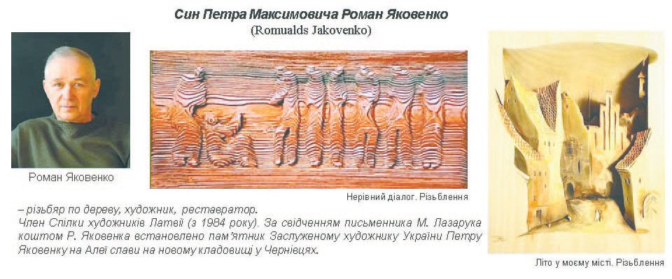 …А потім, насолодившись, розпочала по­шук його сина. Дізналася, що він – латвійський художник і звати його Romualds Jakovenko – Роман Яковенко по-нашому. Подумалось мені, що окрім цікавого живопису Петро Яковенко залишив по собі ще один доробок – сина-художника.