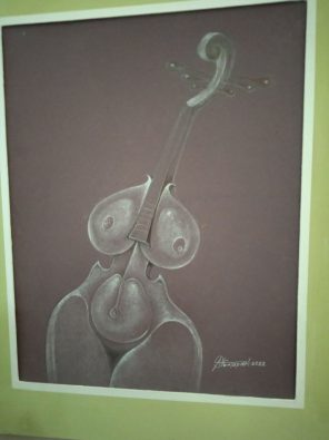 На нинішній виставці експонується 42 роботи митця – живопис, графіка, декоративно-прикладне мистецтво. Погляньте на них – вони змушують замислитись. Скажімо, роздивляєтеся квіти, а відчуваєте… війну. Дивитеся на скрипку, а бачите жінку.