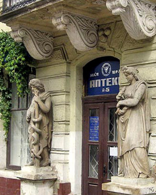 На щастя колізії довкола різьблених фігур древніх богів припинилися, і вартові здоров’я вже друге століття продовжують зустрічати відвідувачів аптеки, заснованої Юзефом Голіховським.