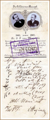 Рецепт від чернівецького лікаря Броніслава Маєрського з його портретами на ювілейному бланку на честь 40-річного лікарської практики містив список складників для виготовлення мазі від корости – інфекційної хвороби, дуже поширеної тоді.